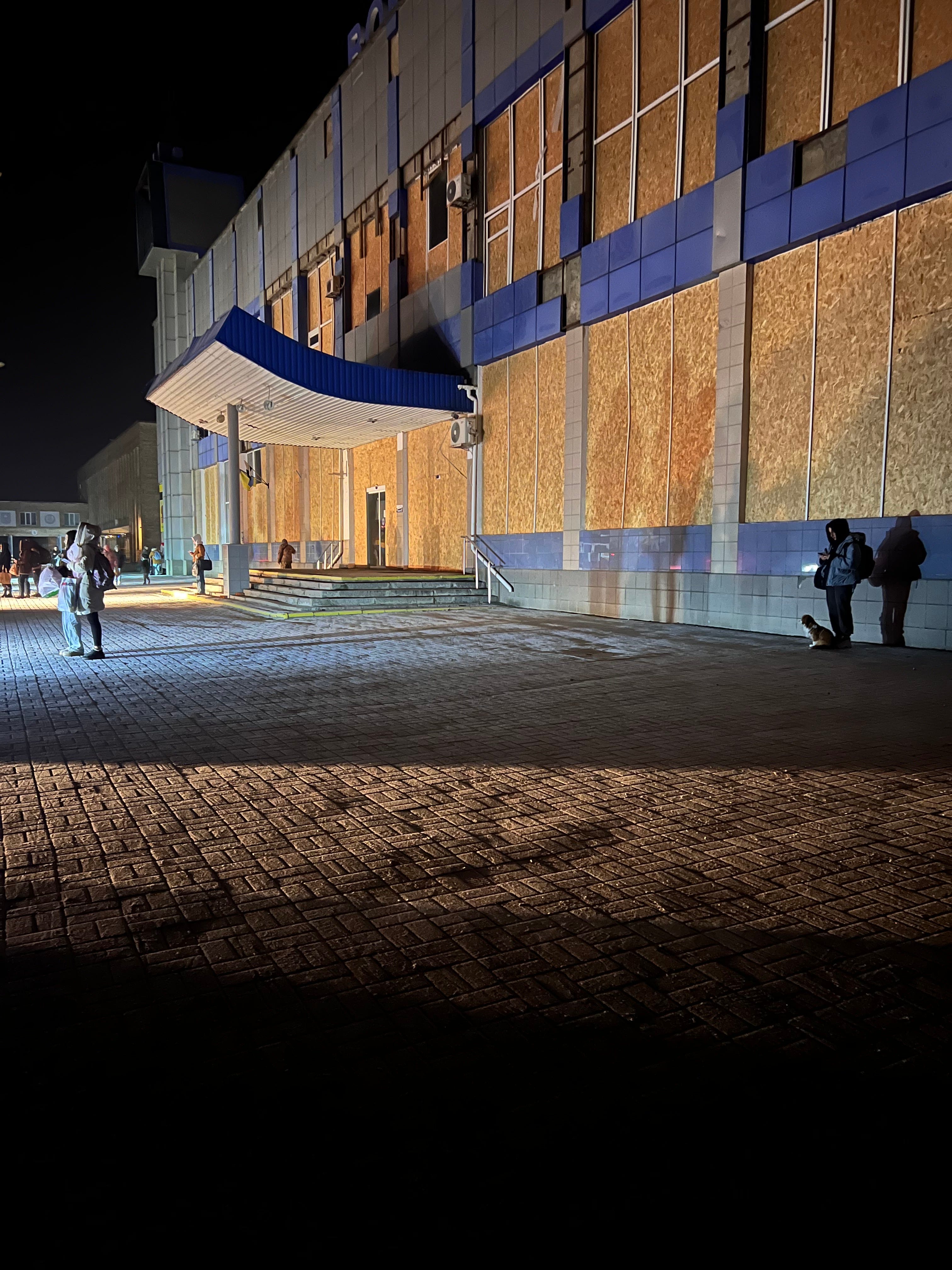 I had arrived in Sumy in the early hours on the night train from Kyiv, which also passes close to the Russian border. Sumy’s railway station was shelled by the Russians at the end of October, and the entire front was still boarded up. It was freezing cold, and I thought a taxi might be impossible to find, but one eventually turned up after around half an hour, and we drove through the darkness to my friend’s apartment block for a couple more hours sleep.